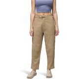 PFC free DWR water resistance • Webbing belt closure • Zipper fly • 2 hand pockets • Security zipper pocket on left side • 2 back patch pockets • Elastic utility loop at back yoke • Gusset construction with ventilation • Double layer of fabric at knee • Double layer of fabric at heel • UPF 50+ • prAna logo label at end of webbing belt • Inseam: 26 1/2 • Rise: 12 1/4 • High Rise, Relaxed