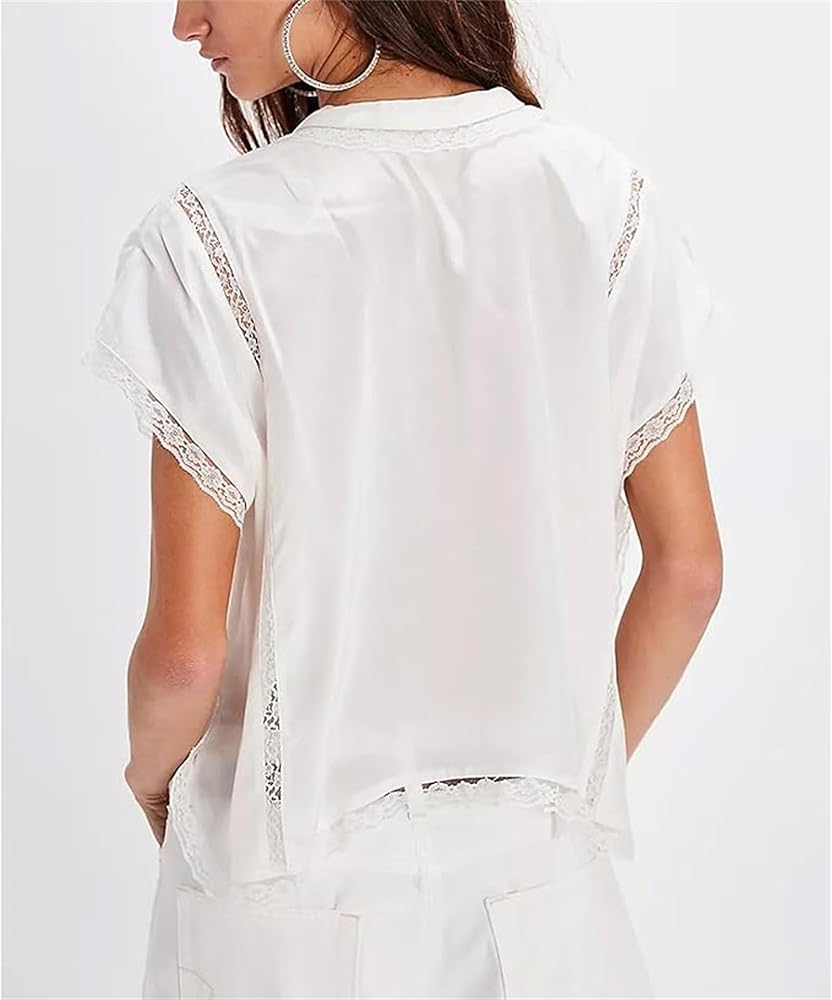 Design: lace cami tank top for teen girls women, half sleeve,round neck, contrast color, split hem, loose fitting, very all-match and fashionable.