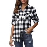 Womens Flannel Shirt Long Sleeve Feature: Classic plaid shirts, long sleeve button down shirts, roll up shirts, turn down shirt collar, single-breasted curved hem tunic top and fit comfy