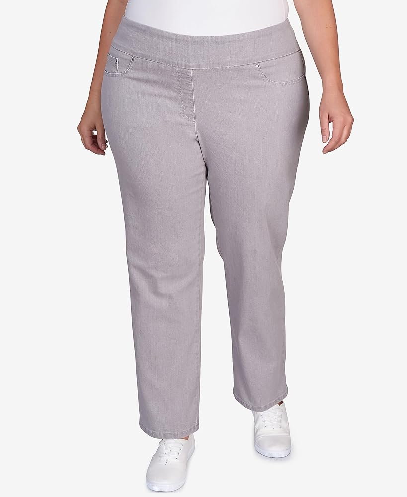 Ruby Rd. Womens Womens Plus-Size Mid-Rise Pull-on Straight Extra Stretch Denim Pant