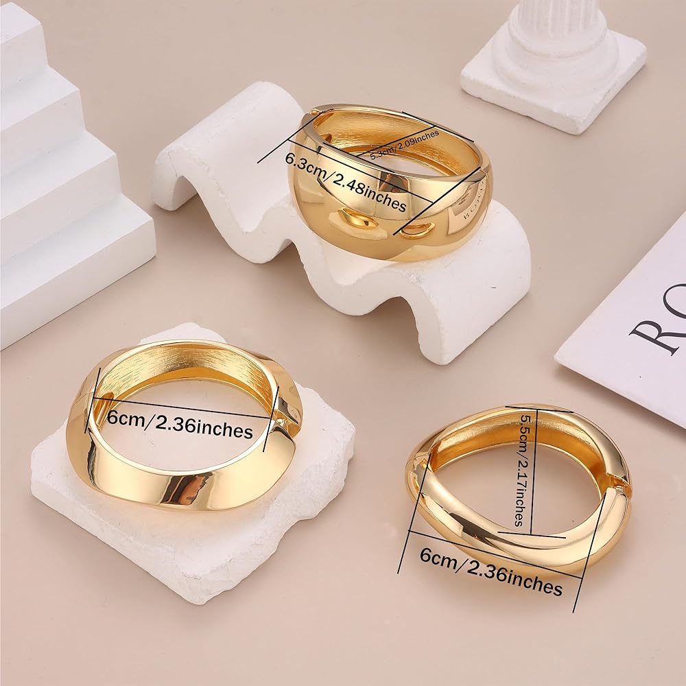 Chunky Gold Bangles: 3 Pcs gold bangles designed to make a statement. Distinctive bangle bracelets for women to wear alone or stacked as a gold bracelet stack. These gold bracelets add instant style