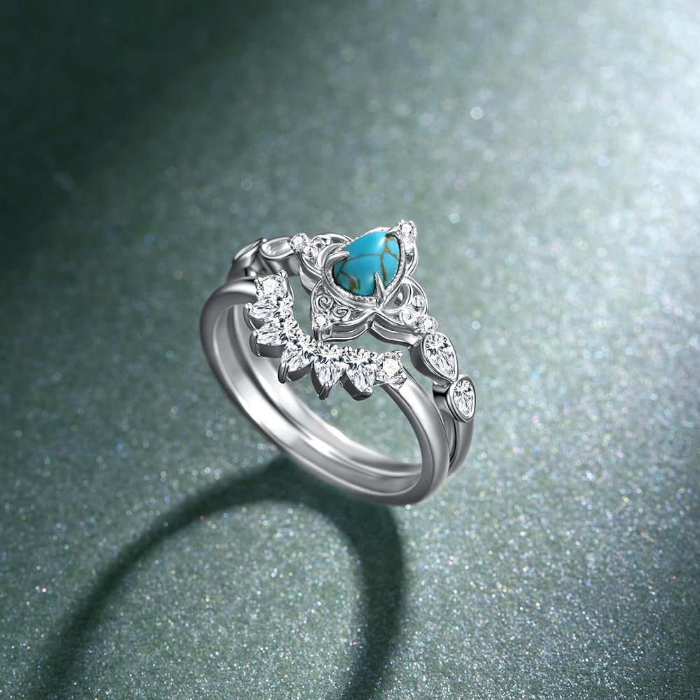 Real Turquoise Jewelry for Women: This turquoise wedding ring set makes a thoughtful and meaningful gift. Perfect for weddings, anniversaries, or other significant life events, it adds a touch of beauty and symbolism to any occasion.