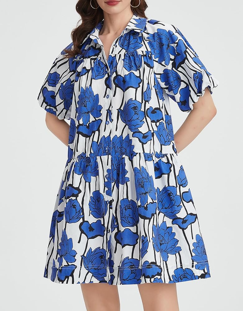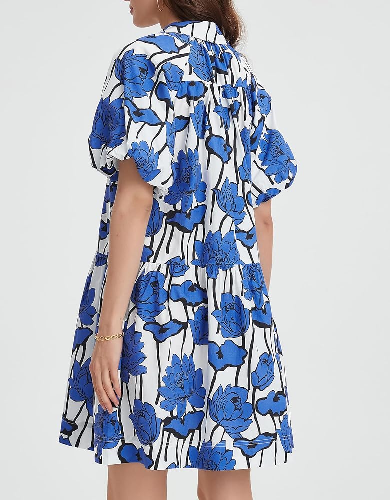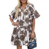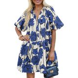 Features: Floral Bohemian Dress, Button Shirt Dress, Cute Summer Dress, Puff Sleeve Short Sleeve Summer Mini Dress, Loose Short Dress, Beach Sundress with Pockets, Casual Holiday Style