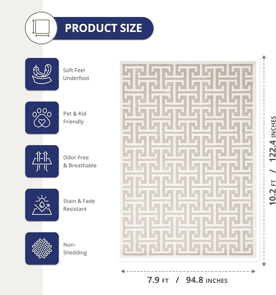LARGE SIZE: This geometric 7'9” x 10'2” area rug is ideal for larger rooms like bedrooms, living rooms, and kitchens. Other sizes are available to fit any space in your home.
