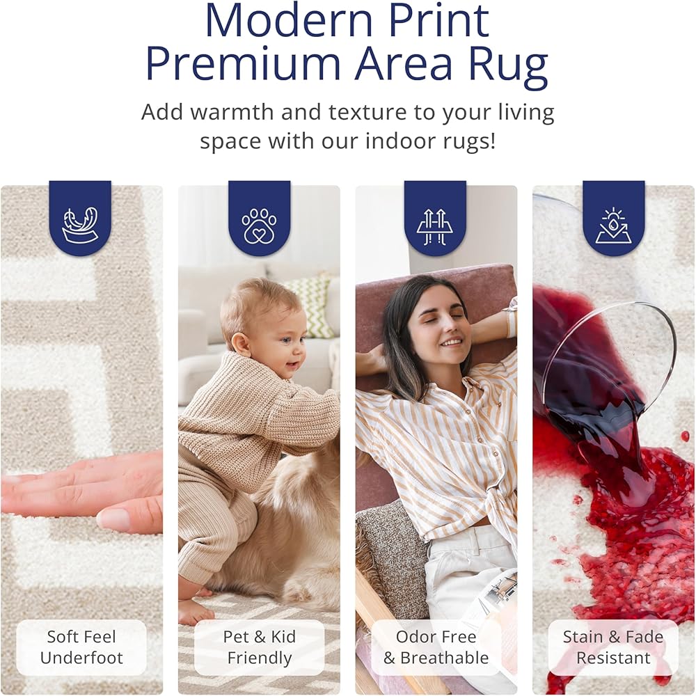 EASY-TO-CLEAN & DURABLE: Our easy-care rugs are designed to hold up against everyday wear and tear in active homes with high traffic areas. The durability of each area rug is the result of the high quality materials combined with the machine-looming process, which create an easy clean, stain-resistant, and stylish rug.