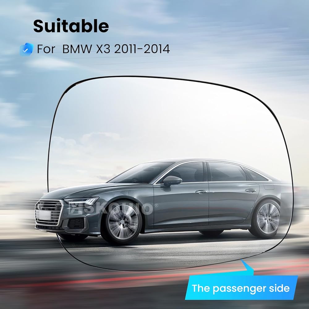 Passenger Side Mirror Replacement Glass for BMW X3 2011-2014,Backing Plate Power Heated Right Side View Car Rearview Mirror Glass for BMW X3 2011 2012 2013 2014