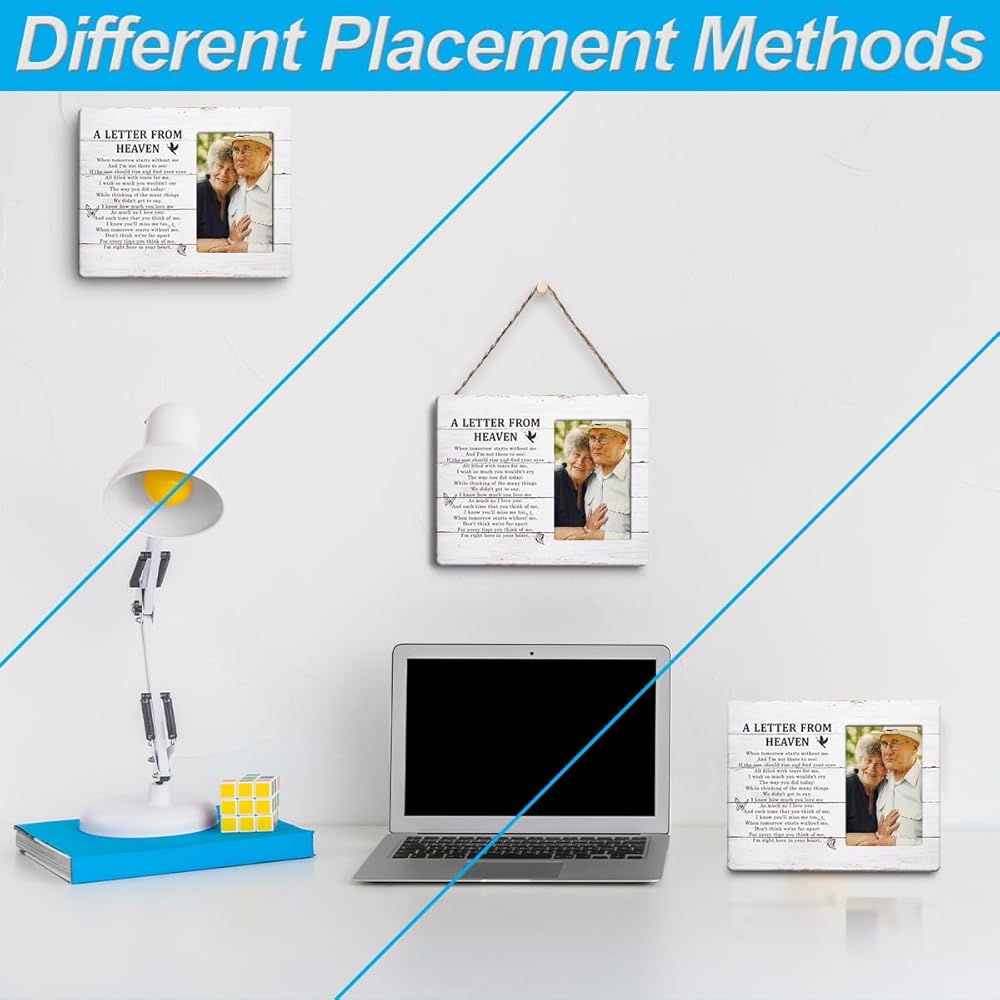 Made of high density wood, come with easy opening tabs at the back for easy access for putting photos, this exquisite picture frame has been carefully designed by the designer to protect and decorate your beautiful pictures. This wood picture frame is equipped with hooks, stand and rope, you can choose put it on the table or hang it. Our picture frame is a great choice for sympathy, condolences, anniversary, retirement, birthday, Thanksgiving, Christmas, New Year, Wedding, bridal shower, etc.