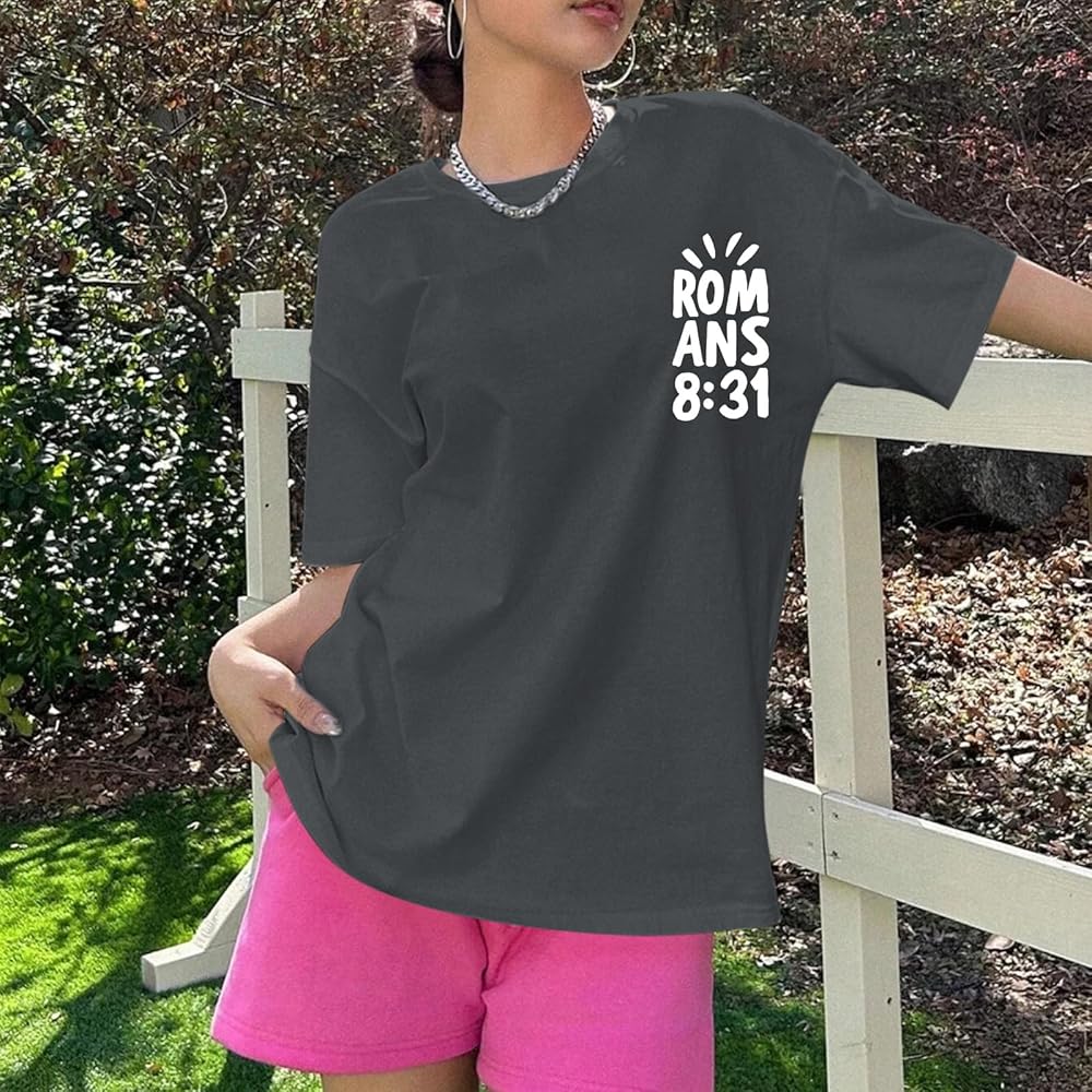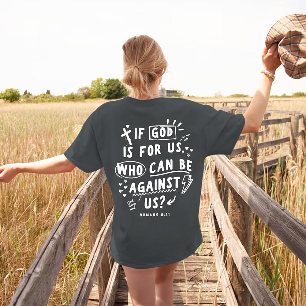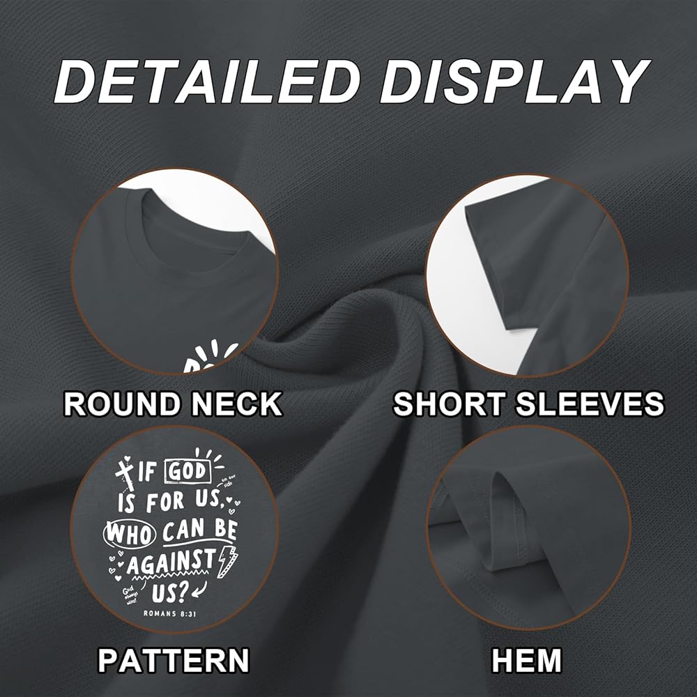 Features: Oversized christian tees, christian graphic t shirts for women, if god is for us t shirt, religious faith shirts, bible verse shirts, god says tshirts, inspirational letter print tshirts, trendy crew neck christian aesthetic shirt