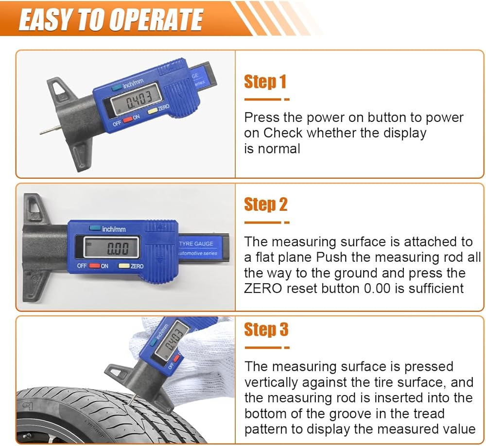 【Easy to Use】: The tire depth gauge tool not only supports unrestricted switching between inch and millimeter units to meet different usage habits and scenarios but also has a one-click zeroing function, which is convenient for you to reset the data at any time. Meanwhile, it also adopts a manual switch design, with simple and easy-to-understand operation, you can measure the tread depth without removing the tire or using other tools.