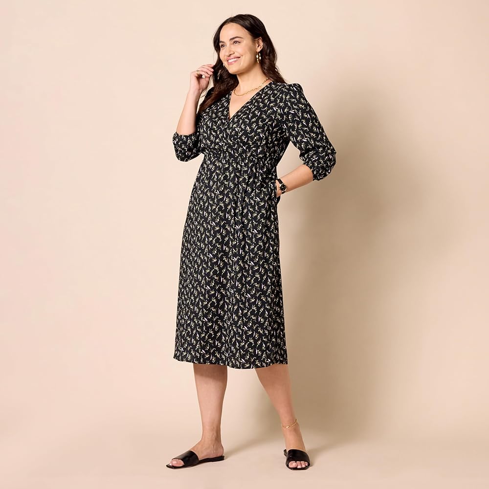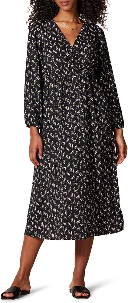 FLUID MIDI DRESS: This figure-flattering midi dress is perfect for all occasions, whether at work, out to dinner, or weekend exploring. Style back to Amazon Essentials Women's Sandals for an easy summer look, or pair back to boots through fall and winter.