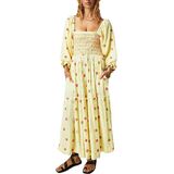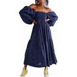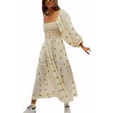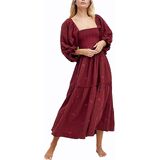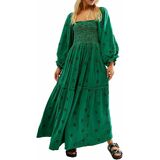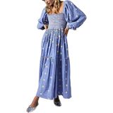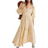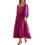 DESIGN: Flowy maxi dress adopts cute style and fitted fit. It's stunning. Square neck shows your charming neck and shoulder line. Puff sleeve hides arm shortcomings. Backless cut out brings fashion to you. Long sleeve dress with pockets perfect for Spring, Summer, Fall and Winter.