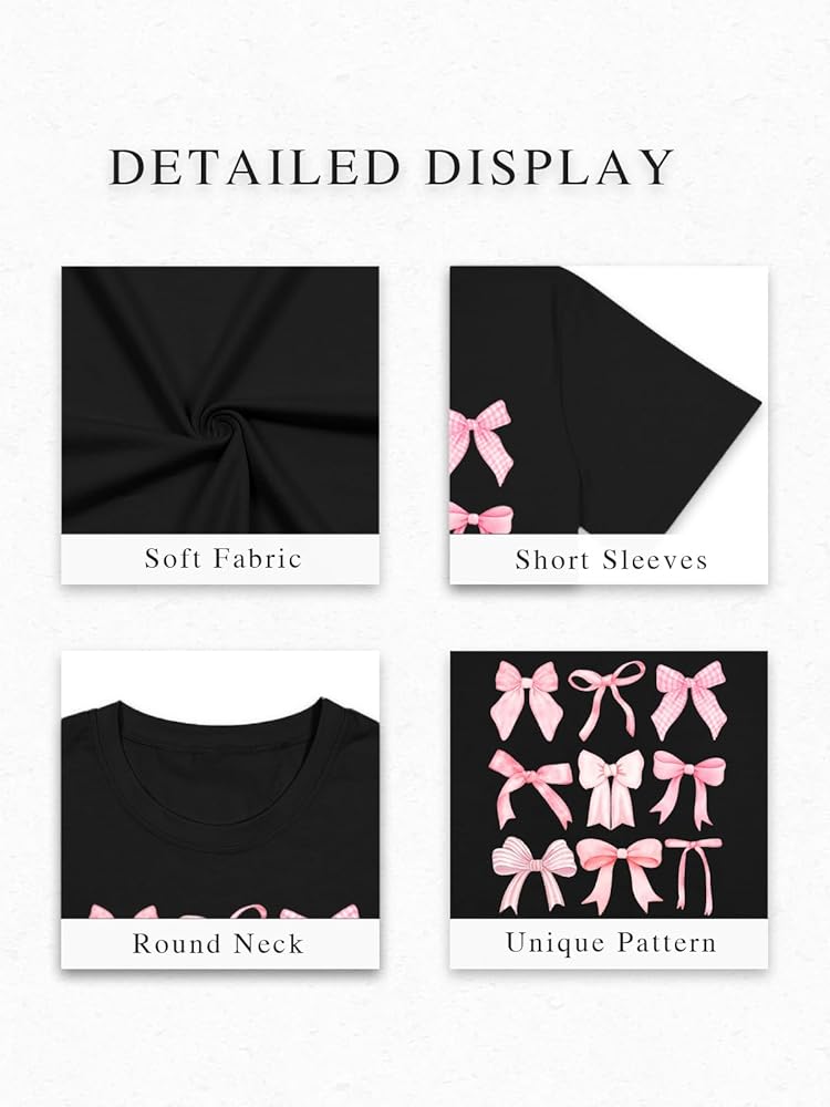 Features: Coquette aesthetic shirt for girls, cute summer short sleeve tops ,fit holiday trip outfits,tween women trendy clothes,girl bow tee top,cute bow graphic blouse.