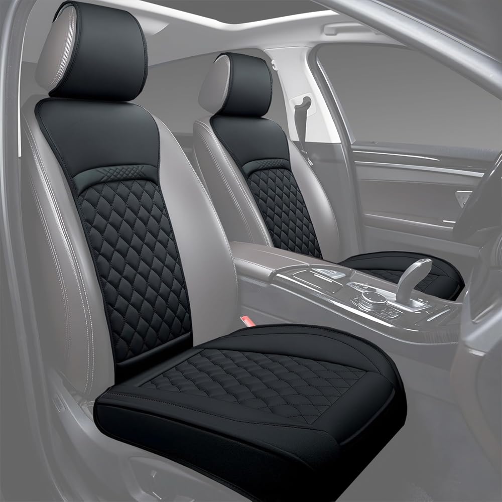 [PREMIUM QUALITY & COMFORT] Joy Forserve high-quality PU leather front seat covers are wear-resistant, scratch-resistant, and waterproof, providing you with a soft touch and maximum comfort on every drive. The rebound composite material ensures long-lasting resilience and durability, making your ride more enjoyable.