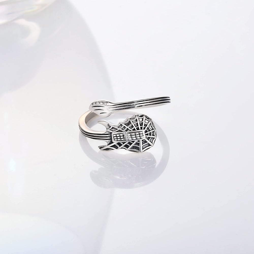 CHIC & ARTSY Spoon Ring 925 Sterling Silver Spoon Rings for Women Dainty Tennis Guitar Ladybug Acorn Spoon Finger Rings Open Adjustable Leaf Ring Jewelry