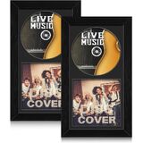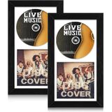 2 Pcs CD Display Frame, 12" x 6.8" Album Cover Art and CDs Display Frame Self Standing with Wall Hanger, Classic Record Album Frames, Imitation Wood Polystyrene CD Cover, Home(Black)