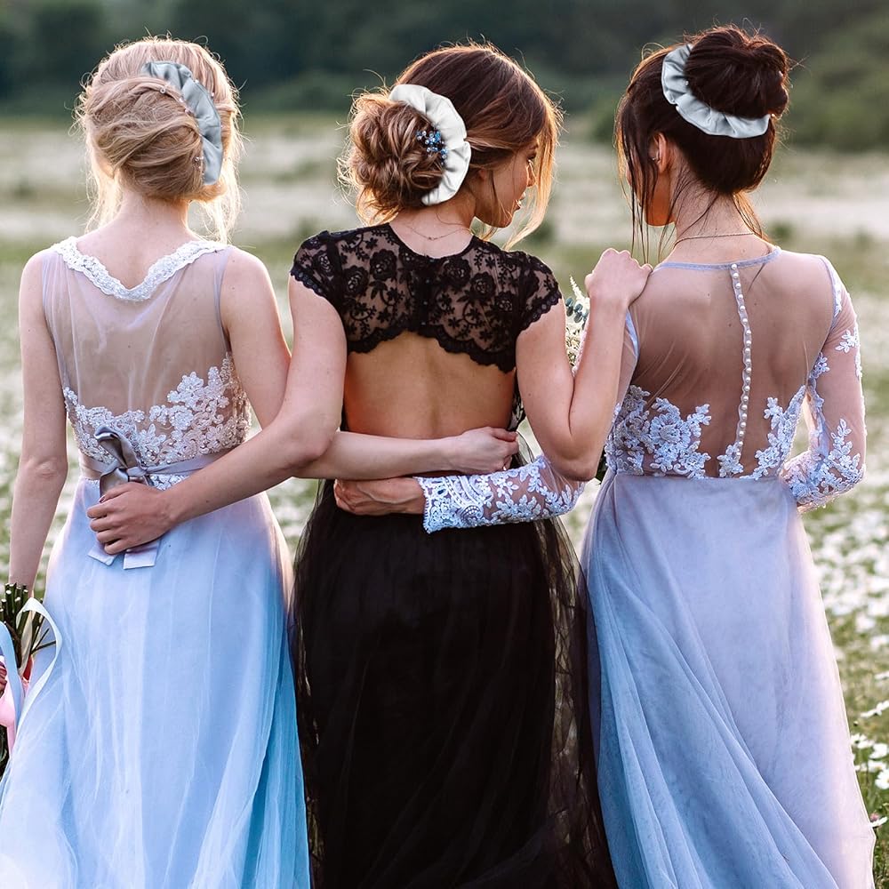 Package Contents: The bridesmaid gift set includes 6 pairs bachelorette sunglasses and 6 pieces satin bridesmaid hair ties, 1 set white for bride and 5 set for your friend. Great as bachelorette party favors and bridesmaid gifts!