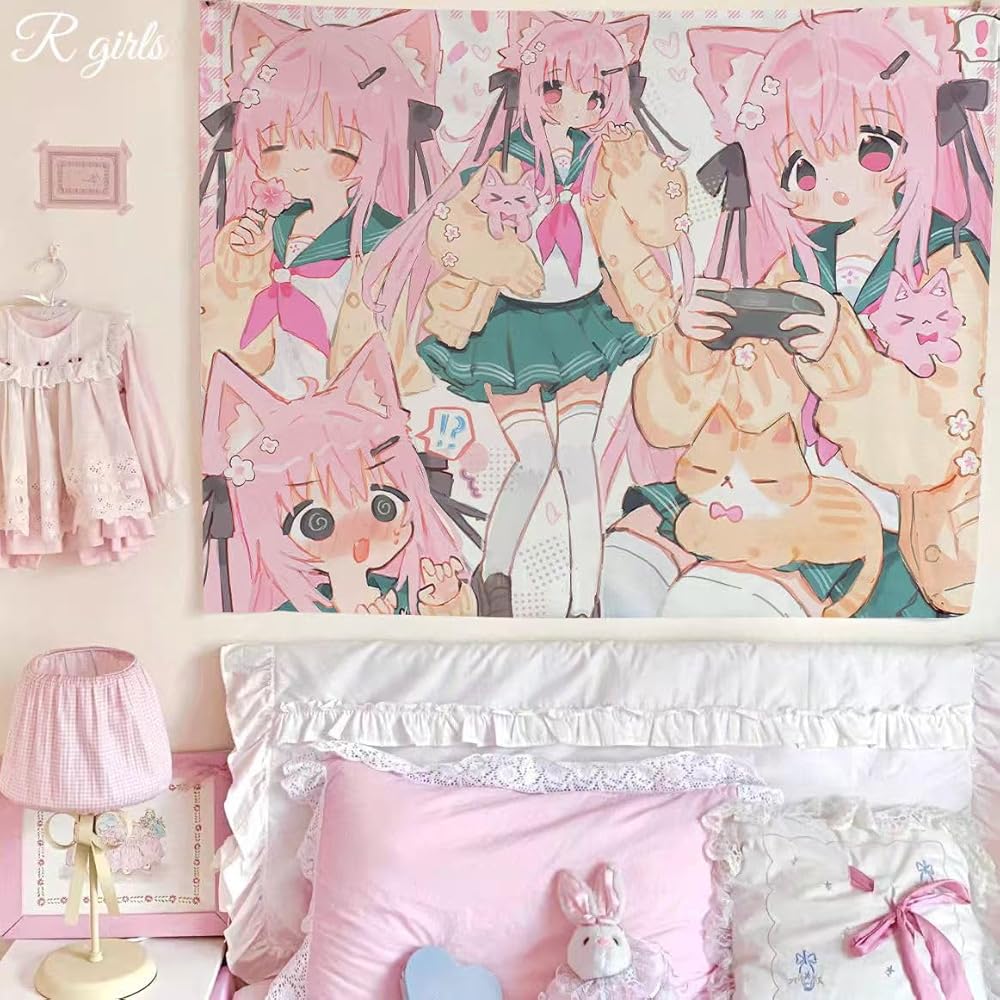 cutecore room decor, pink tapestry, kawaii room decor, anime tapestry, anime decor, tapestry pink, anime room decor, tapestry for bedroom aesthetic, wall tapestry for bedroom, aesthetic tapestry, anime wall art, coquette room decor, tapestry aesthetic, tapestry wall hanging , tapestry for bedroom