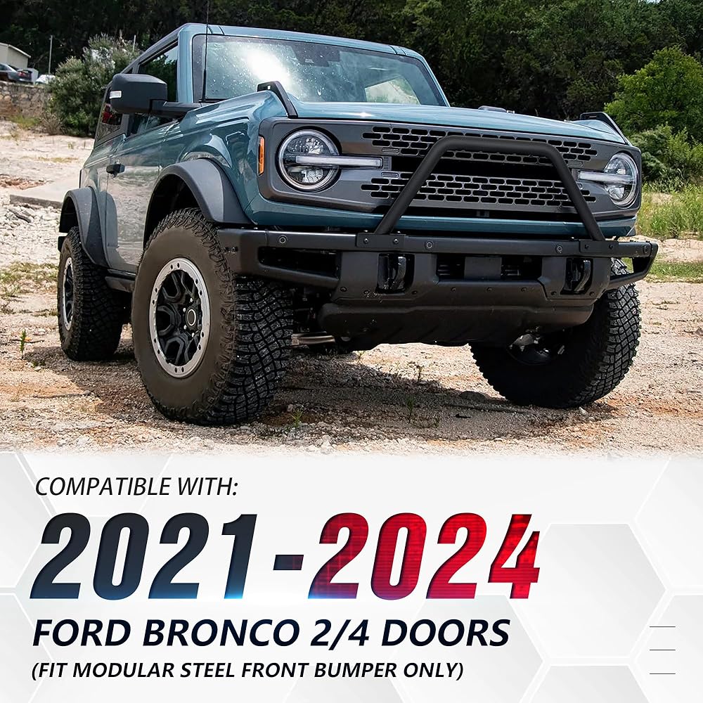 EYOUHZ Bull Bar Grille Brush Guard with Light Mount Compatible with 2021 2022 2023 2024 2025 2026 Ford Bronco (for Modular Steel Front Bumper ONLY) Rock Off-Road Front Bumper Rack Push Bar-Black