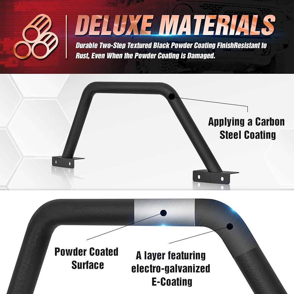 【High-Quality Materials】: Constructed from square carbon steel with a black powder-coated surface, our Bumper Push Bar offers enhanced rust resistance and durability. The seamless welding ensures a sturdy structure.