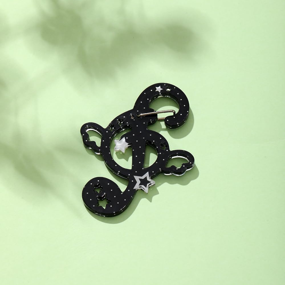 DESIGN: Trendy Y2K carabiner keychain featuring cute cat silhouettes with musical note accents in black and silver color scheme.Adorable cat-shaped design incorporating musical notes and star details for a whimsical aesthetic appeal