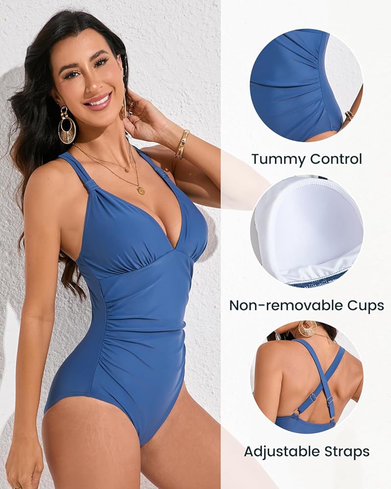 【Design】Crisscross adjustable straps enhance chest lift and adapt to different torso lengths, while non-removable cups ensure natural shaping without shifting. Designed for comfort in this womens one piece swimsuit