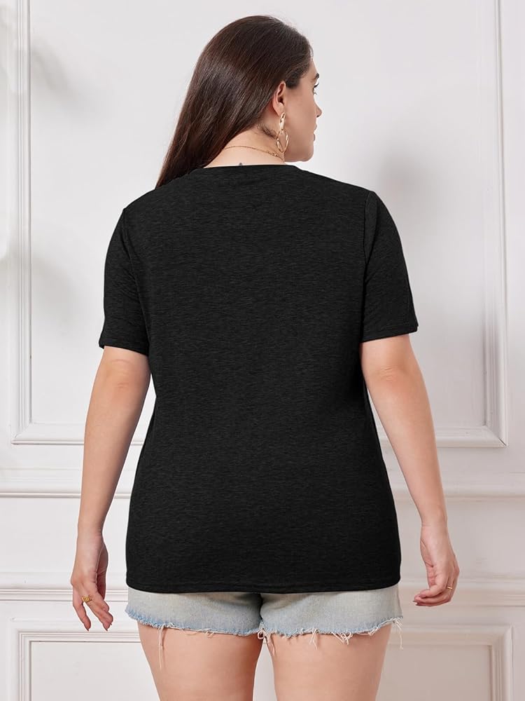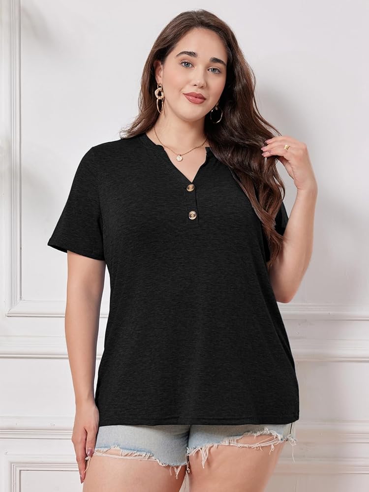 Feature: Plus size shirts for women feature v neck t shirt, short sleeve, button down henley shirts, plus size 1X-5X, solid color, casual loose fit, sexy v collar lets your neckline look more slender and graceful