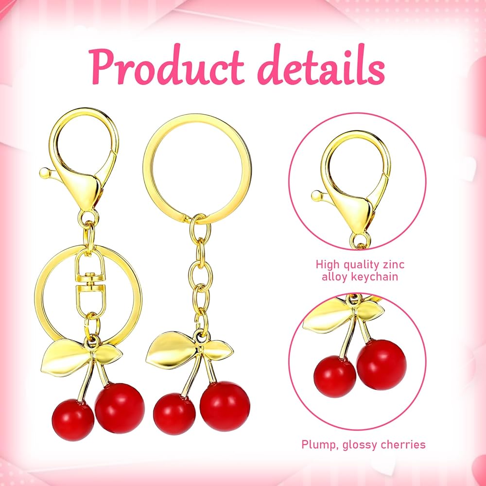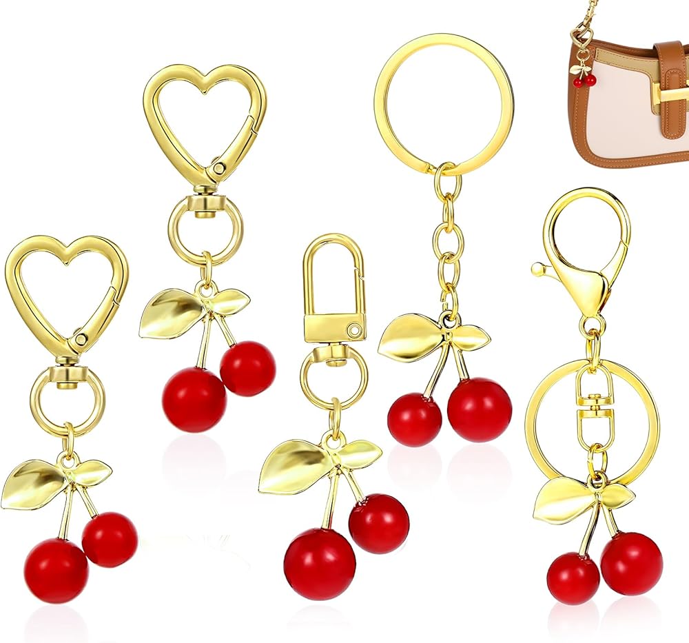 Cherry Keychain Set: You will receive 5 adorable cherry-themed purse charms in one set, with different buckles. Enough to meet your daily needs, and you can also share with good friends! These charming accessories let you mix and match to complement different handbags or use as keychains