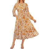Discover timeless comfort and flattering style with our GRACE KARIN Women's A-Line Long Dress. Designed for effortless wear, this mid-calf length dress features a chic Henley V-neck and convenient elastic waist for a comfortable, adaptable fit.