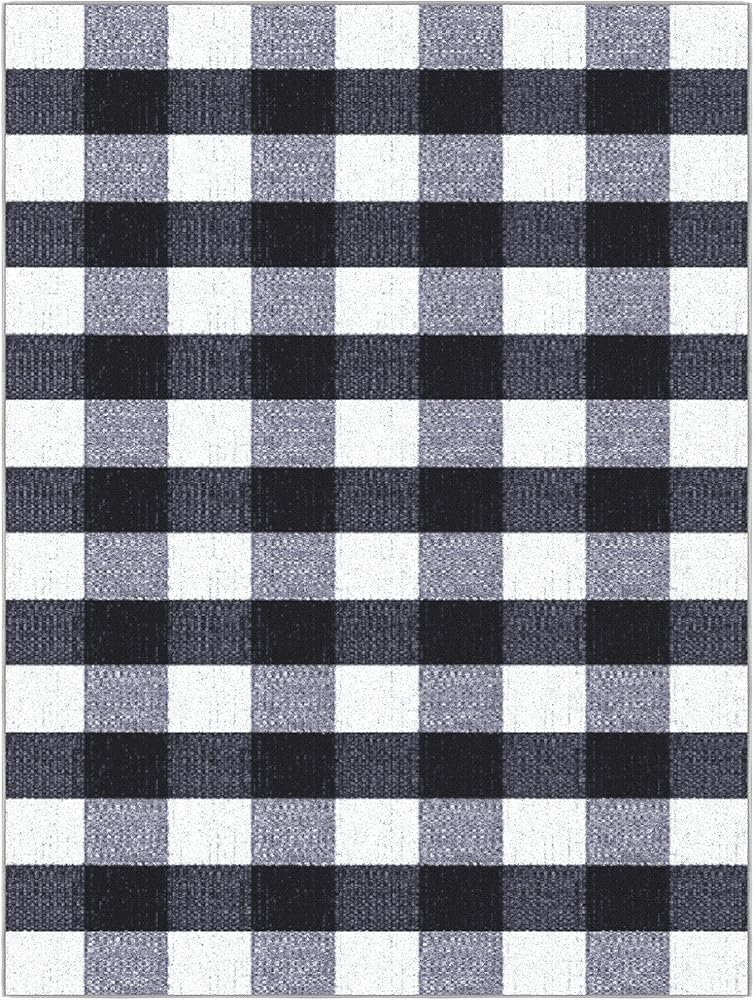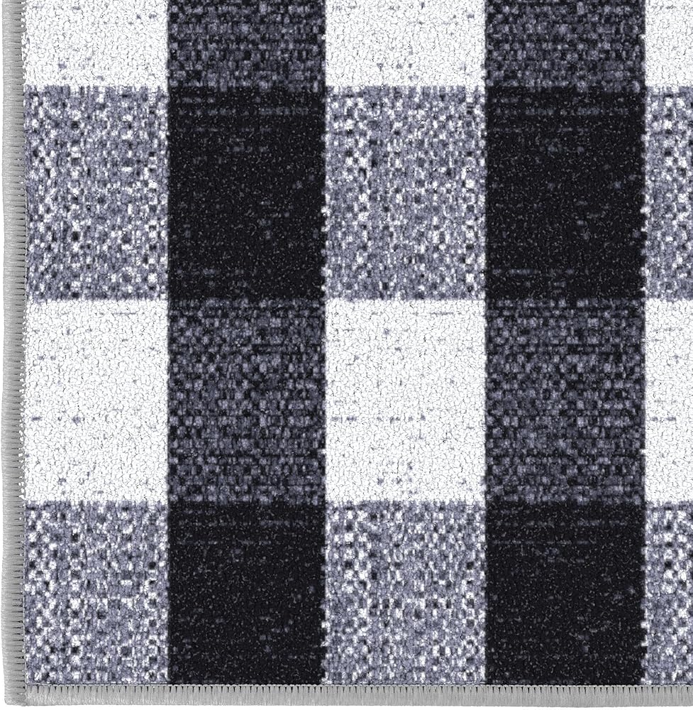 Ottomanson Rugs for Entryway 2'3" x 3' Non Slip Buffalo Plaid Small Area Rugs Durable Front Door Mat Rug Stain Resistant Entrance Rugs for Bathroom Kitchen Bedroom & Living Room, Black/White