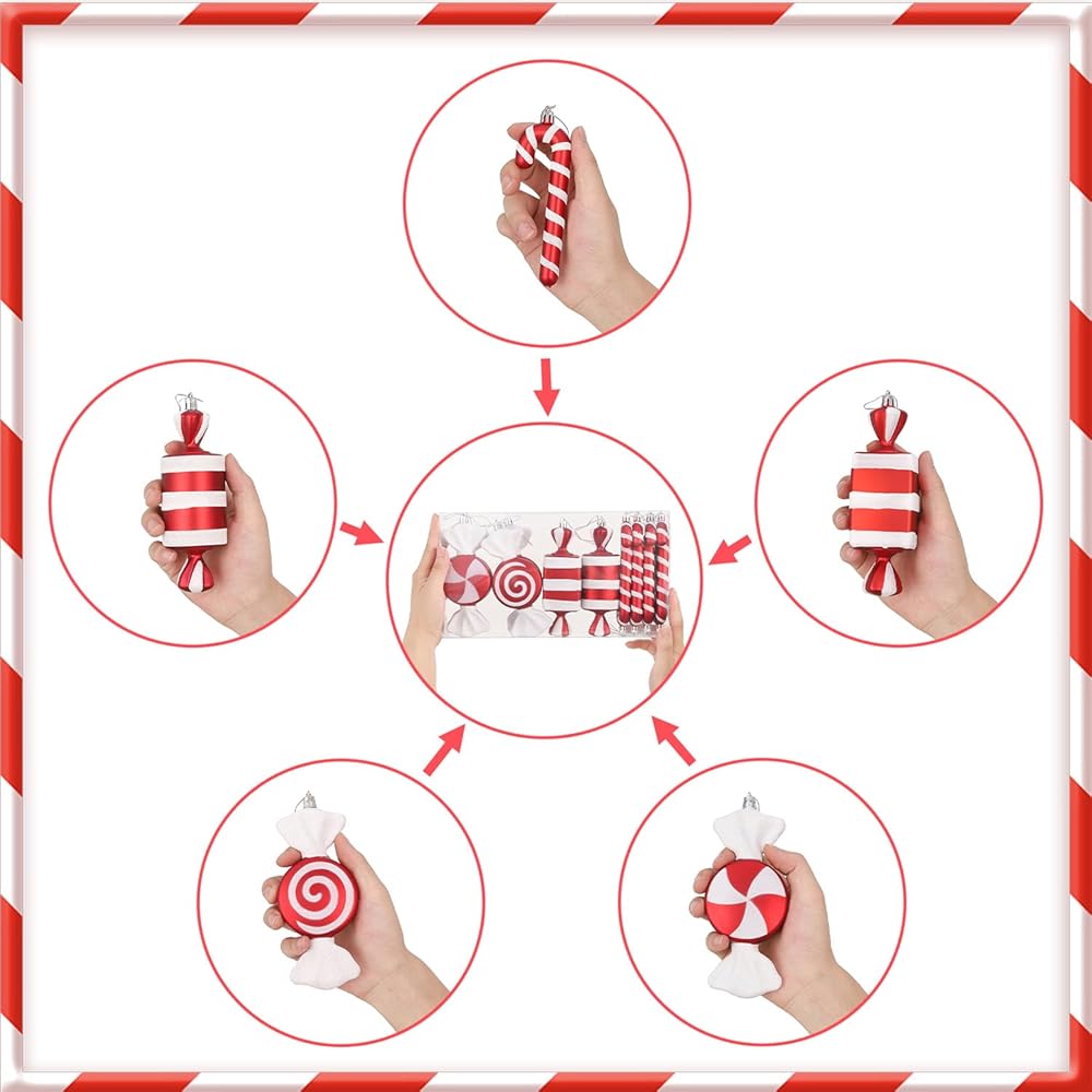 14Pcs Christmas Hanging Candy Balls Ornaments Red White Candy Cane Pendant for Home Part Christmas Tree Decorations Xmas Indoor Outdoor Party Decoration