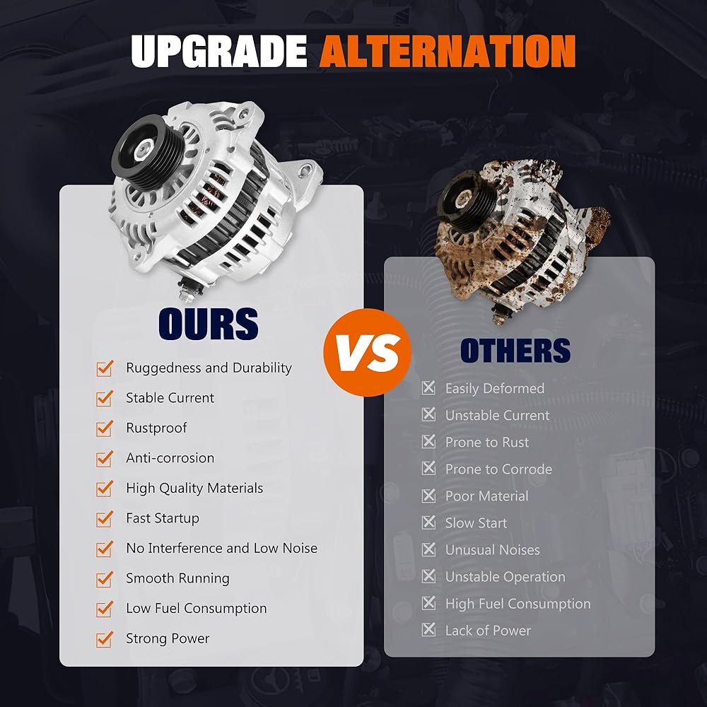 Easy Installation: This Alternator is designed and manufactured to meet original factory specifications, all dimensions, key mounting surfaces, and contact points are gauged and measured for proper fit