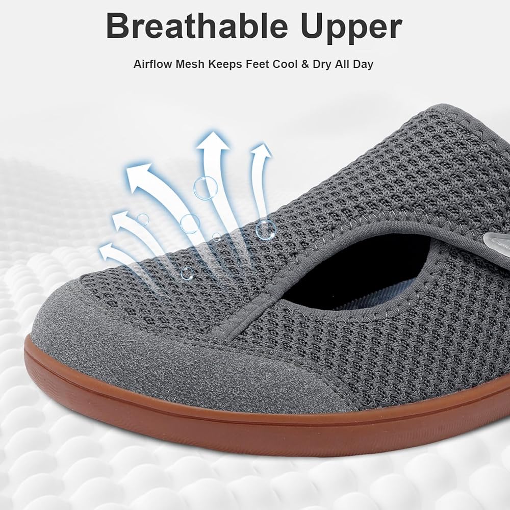 Adjustable Hook & Loop Shoes for Swollen or Wide Feet: JOINFREE men's walking shoes feature an easy-to-adjust hook and loop closure, offering a personalized fit for swollen feet, high insteps, or wider foot shapes. These diabetic walking shoes provide secure support and all-day comfort without tightness or pressure