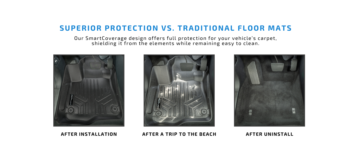 ALL WEATHER PROTECTION - These floor liners offer all-weather, stain-resistant protection against all the elements, including snow, mud, sand, and salt water.