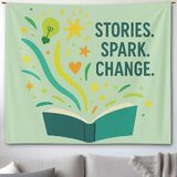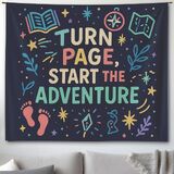 Xolytar Library Tapestry Turn Page, Start The Adventure - Navy Blue Reading Corner Decor, Inspirational Book Quote Wall Art for Classroom, Middle School Teacher (50x60)
