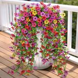 Packaging Content: Faux mums for outdoor planters consist of 4 bundles of fake hanging flowers, each 25.6 inches long, 16 forked; Each fork has many realistic fall flower heads and leaves, adding a charming color to your space
