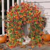 Eye-catching Fall Hanging Flowers: Artificial fall flowers for outdoors feature a dual colored floral head design, with stem of varying lengths imitating the beauty of nature, which can blend well into the fall scene and create a strong autumn atmosphere