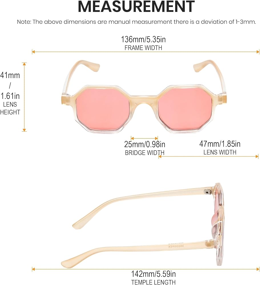 Optimized Frame Dimensions: These glasses are not only functional but also made to fit comfortably. The precise dimensions of the frame - frame width is 136mm (5.35 inches), lens width is 47mm (1.85 inches), lens height is 41mm (1.61 inches), bridge width is 25mm (0.98 inches), and temple length is 142mm (5.59 inches) - ensure a secure and comfortable fit for both men and women. The detailed measurements are engineered to provide effective protection against various light sources while maintaining a stylish look.