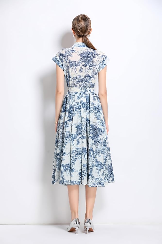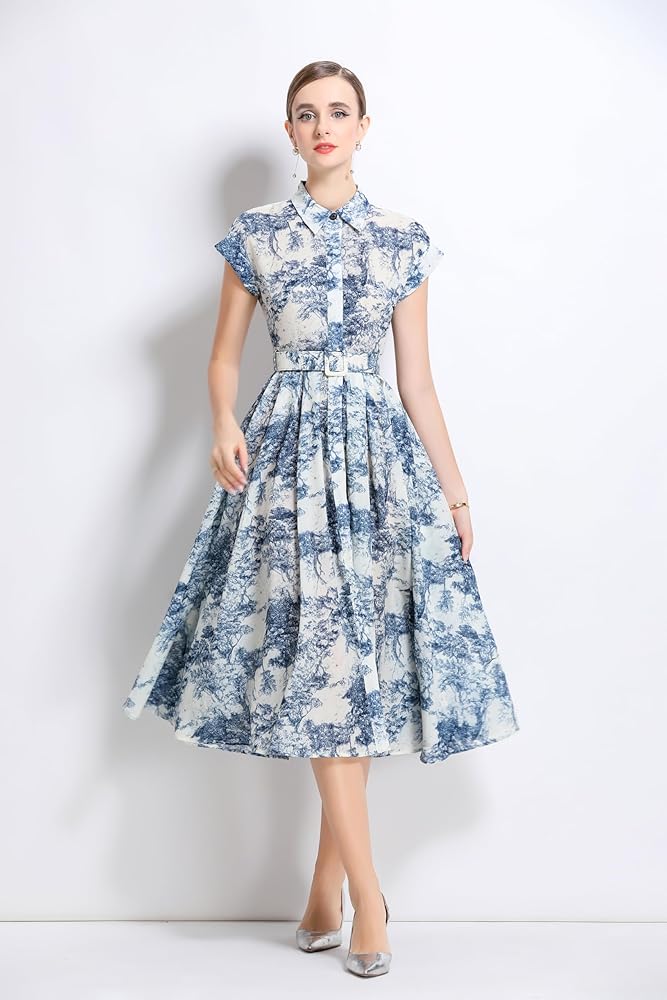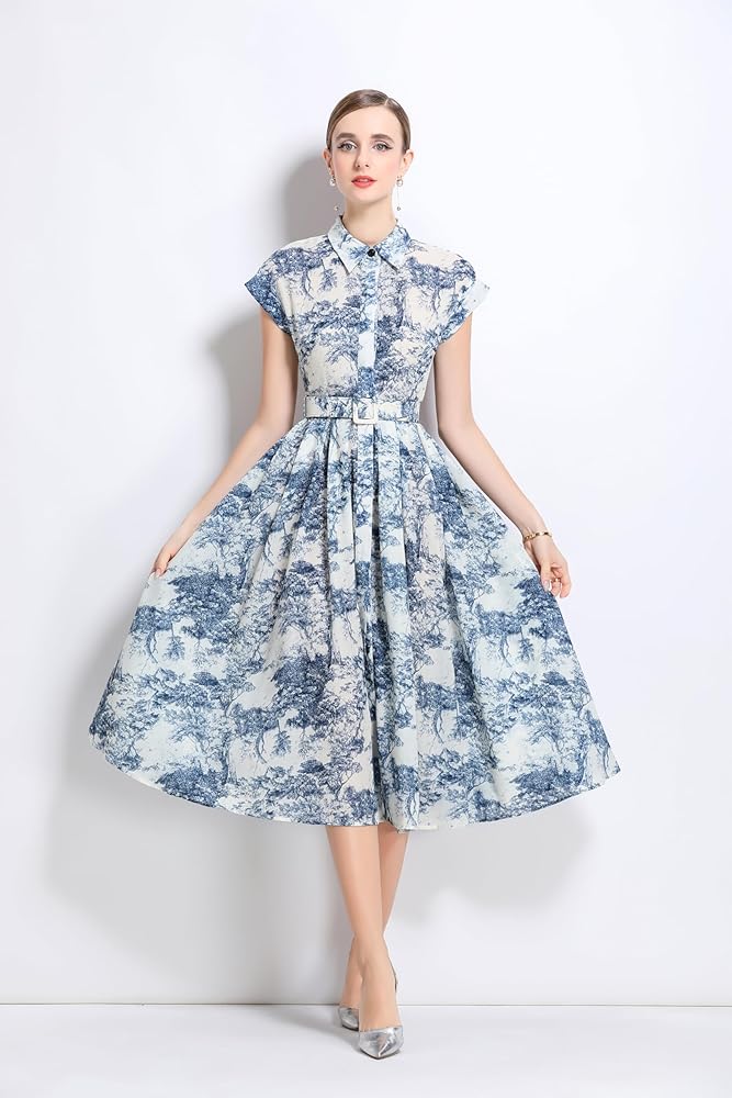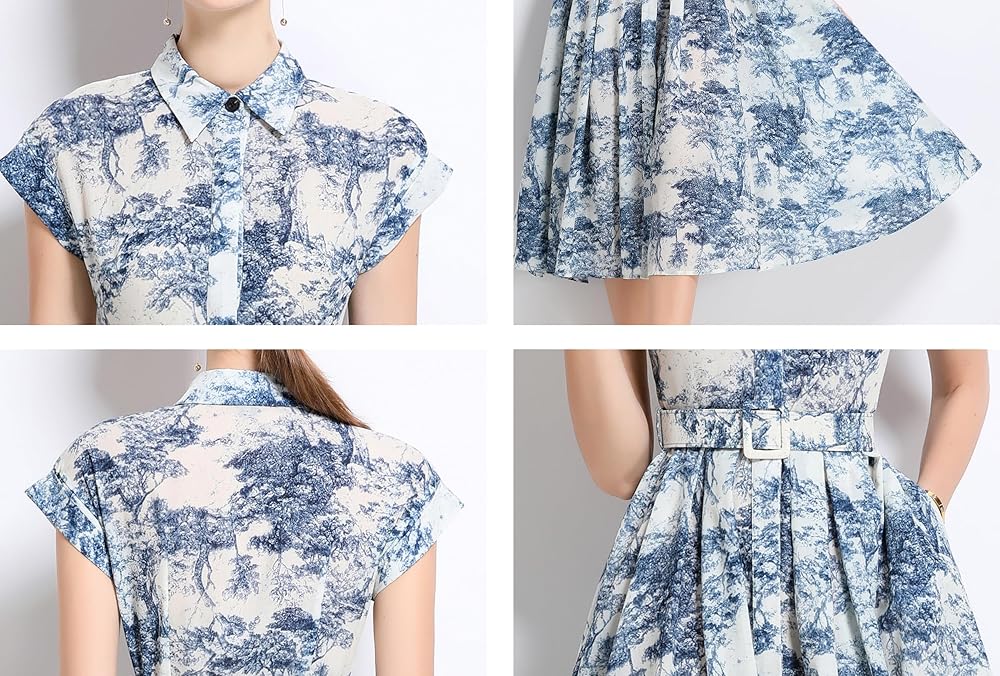 Features: Short sleeves, classic collar shirt, exquisite prints, waist belt, buttons,a midi flowy dress for women and girls.