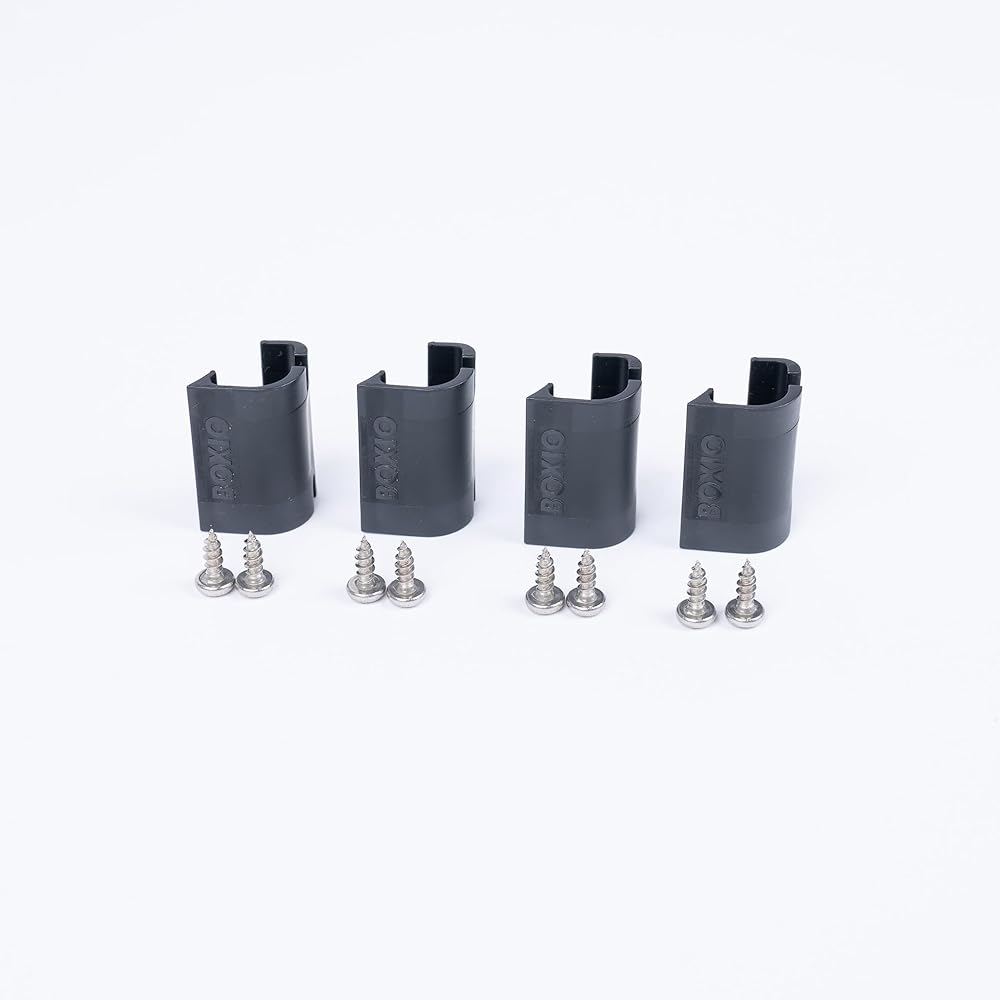 BOXIO - Fix: 4 x black floor retaining clips for your BOXIO Toilet, Wash, Solo or SoloUp - Keeps Euroboxes securely on the floor - No slipping in the car, boat or camper