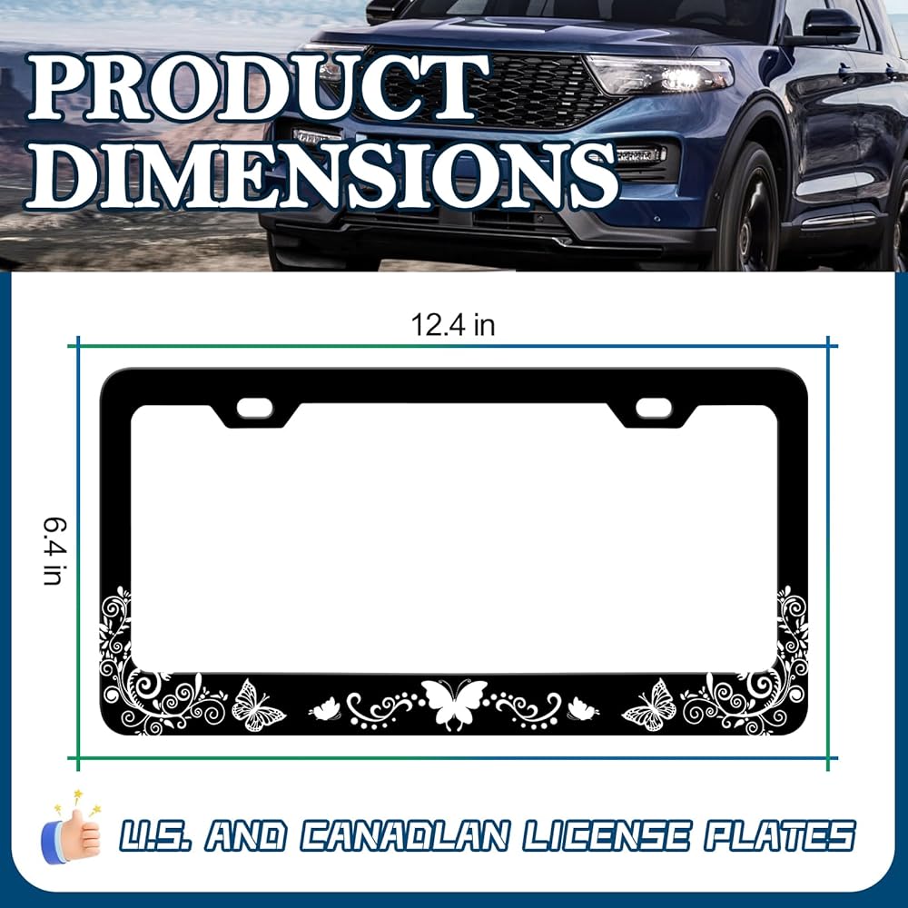 Standard License Plate Size: The license plate frame measures 12.2 x 6.3 inches and fits standard US and Canadian license plate frames; Make your car more stylish, stand out and stand out from the crowd