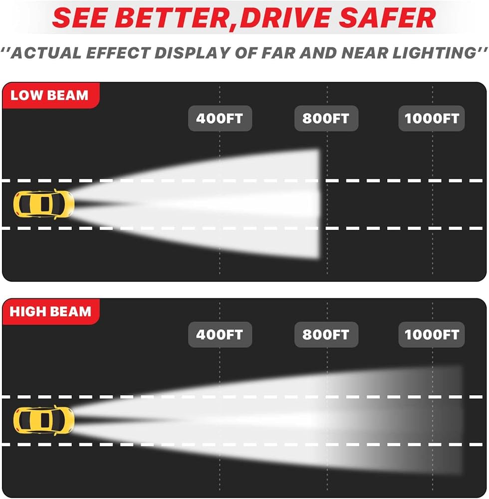 【Prevent Dazzling】The low beam has a Z-shaped bright and dark cut-off line to prevent dazzling of oncoming vehicles, while ensuring an illumination distance of greater than 70 meters in the front lane. Adequate brightness can also ensure that objects on both sides of the road are clear enough at night, and never hit a deer again.