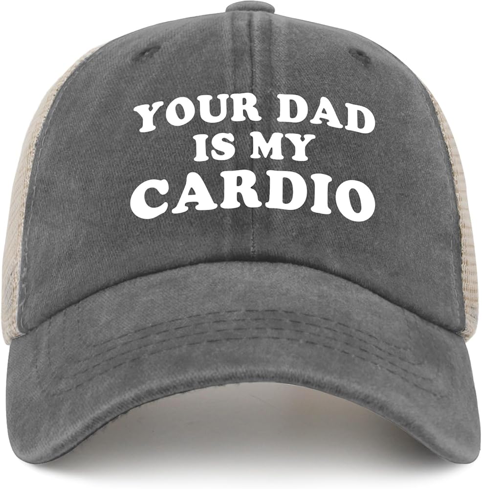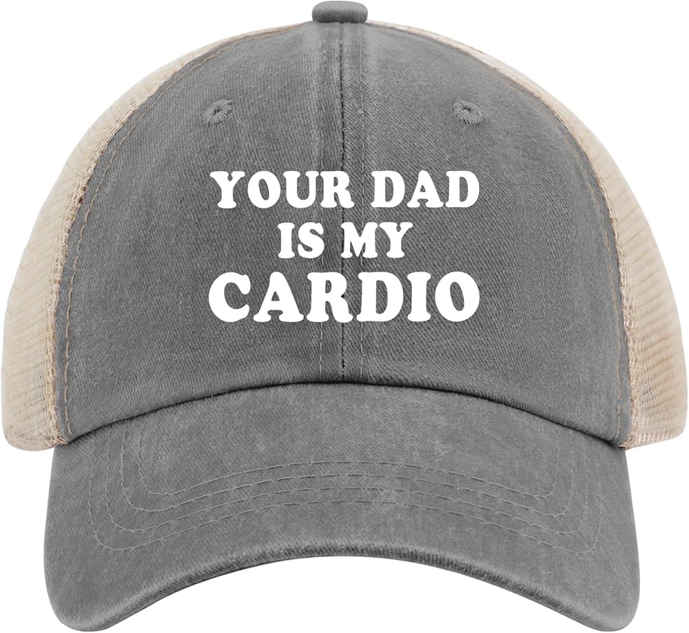 Your Dad is My Cardio Hat Trucker Hat Women Vintage Mesh Hats for Men and Women Breathable Cap for Summer, Retro Trucker Hat Washed Denim Baseball Cap Unisex Snapback Adjustable Hat