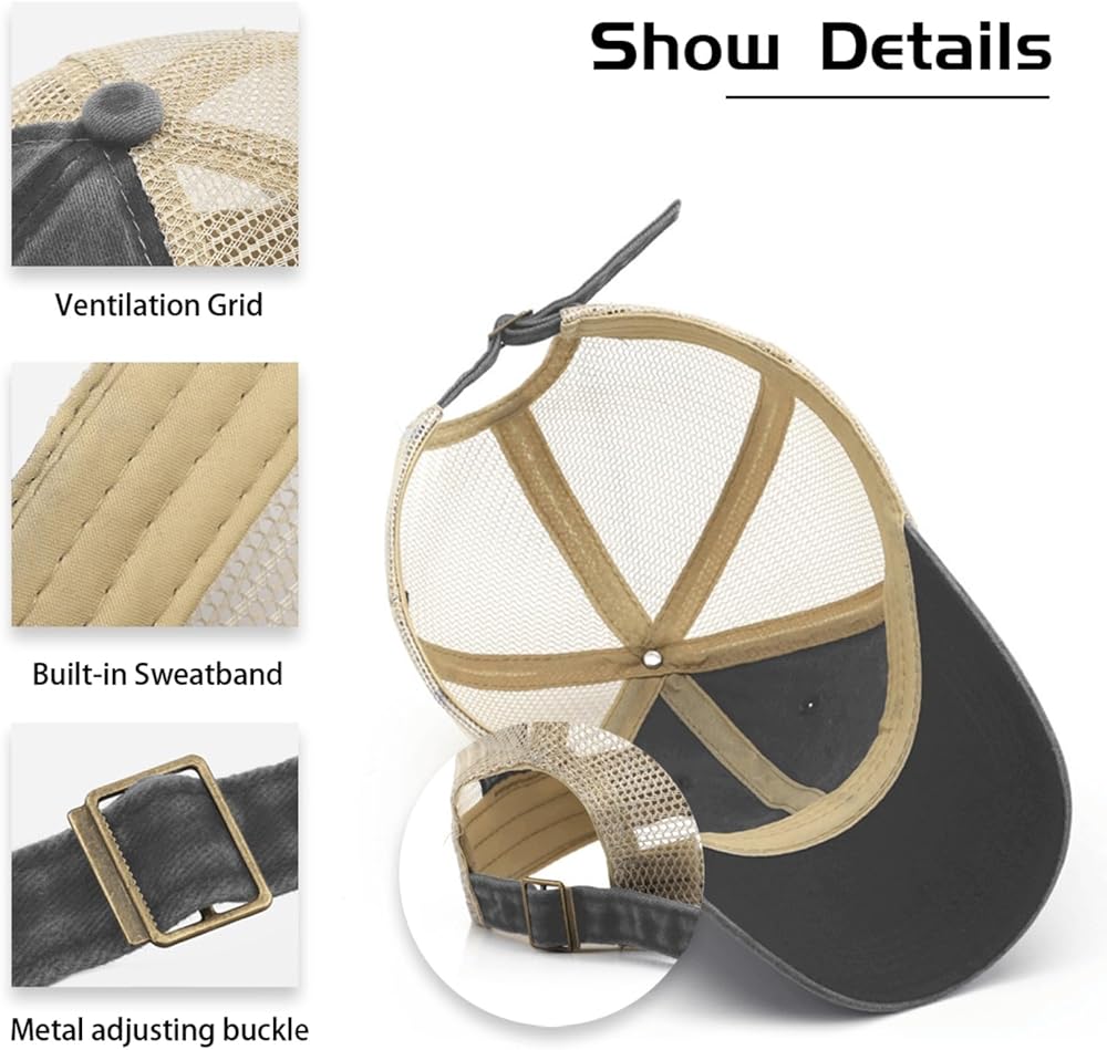 This vintage-style mesh trucker hat is soft and breathable, ideal for both women and men on bad hair days. Suitable for fishing, camping, hiking, climbing, or any outdoor sport, and of course indoor exercise or daily use.