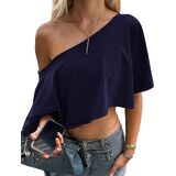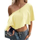 Style: Off the shoulder crop top oversized half sleeve t shirt, boxy cropped tees for women, baggy oversized crop tops, women's flowy top, one shoulder loose fit crop top tee shirt, oversized workout shirts for women, off shoulder tee, casual loose summer going out outfits