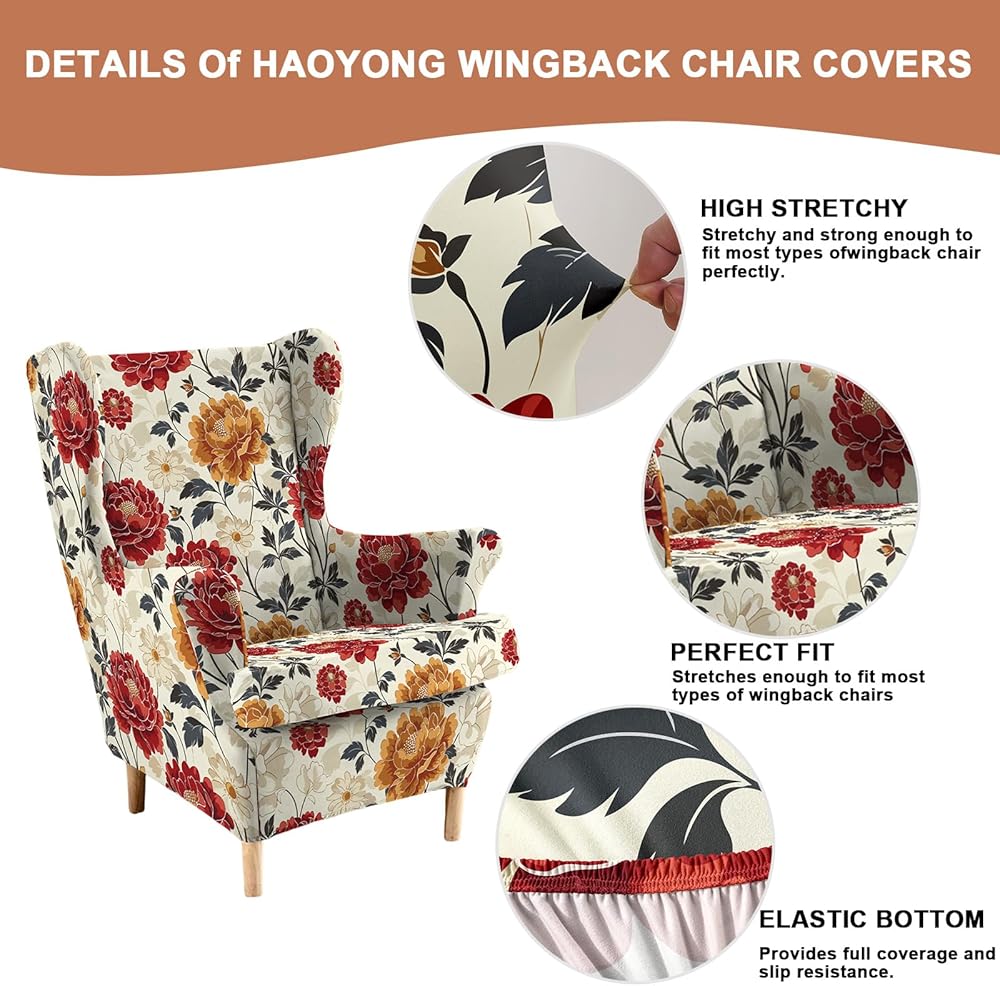 【High Quality Wingback Chair Cover】:HAOYONG Wingback Chair Covers is made of 92% polyester and 8% spandex and deliver long-lasting durability and all-day comfort. Our wing chair slipcovers equipped with reinforced double-stitched seams that prevent tearing and fade-resistant fabric that maintains vibrant hues through multiple washes, these wingback chair covers are built to beautiful living spaces.Providing year-round protection for your cherished furniture.