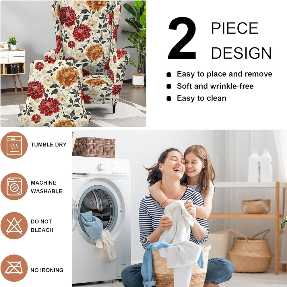 【Easy Care & Install】:Machine washable, easy to care and maintain, wash in cold water in cold water at gentle cycle, using mild laundry detergent,do not bleach and iron. This 2 pieces chair covers for living room are easy to install, soft to the touch and update your decorative wing chair covers in just minutes.Warm tips: It is recommended that dark-colored chairs do not choose light-colored chair covers, as there may be a problem of see through.