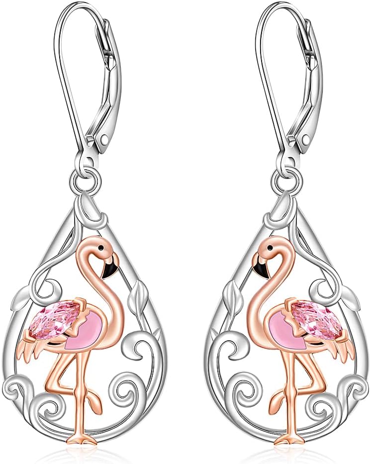 [FLAMINGO THEMED JEWELRY] A must-have for flamingo lovers, this pair of earrings combines fun and luxury. It's the ideal accessory for a tropical vacation, a beach outing, or even a festive event.