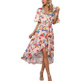 - Features: Floral Print, V Neck, High Low, Flowy beautiful dress