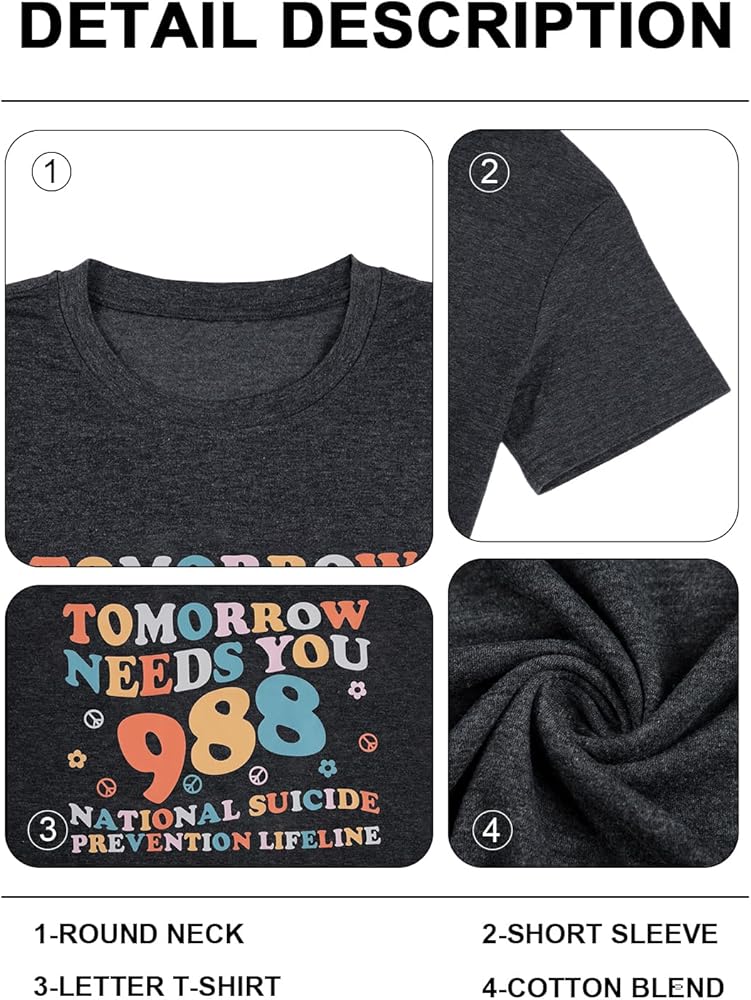 Features: You matter tshirt, mental health awareness tee top, Tomorrow Needs You Shirt, national suicide prevention lifeline shirt, color letter design, use classic crew neck design, color mental health,Great outfit for Mental Health awareness month for fighters