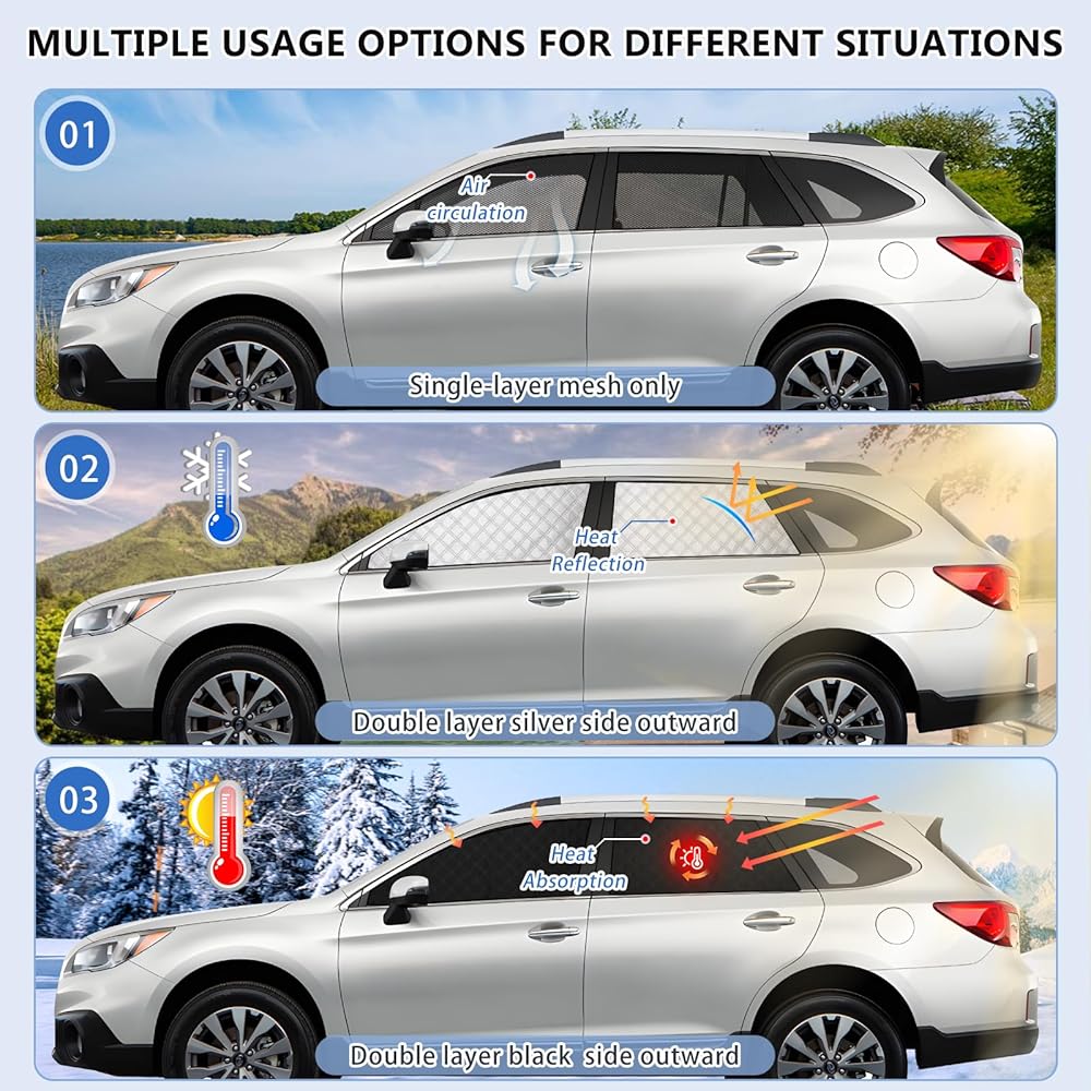 All-Season Use: This Toyota Tacoma window shades for car windows is not just for summer! Its reversible two-colour functionality allows for effective cooling in hot weather while providing insulation against the cold in winter, making it an essential accessory for all-year-round comfort